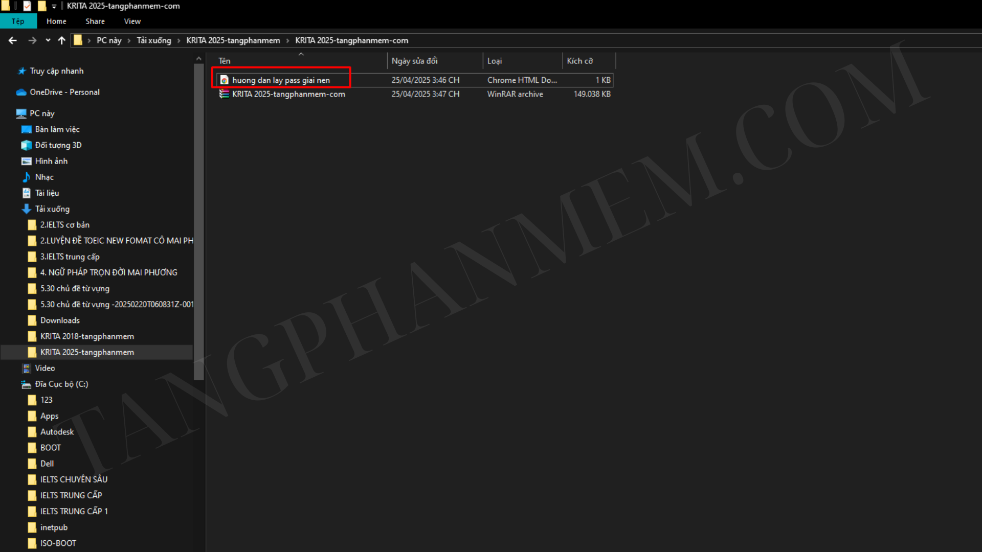 Bước 2: Nhấn chuột vào File “huong dan lay pass giai nen” để tìm mật khẩu sau đó giải nén File bên dưới.