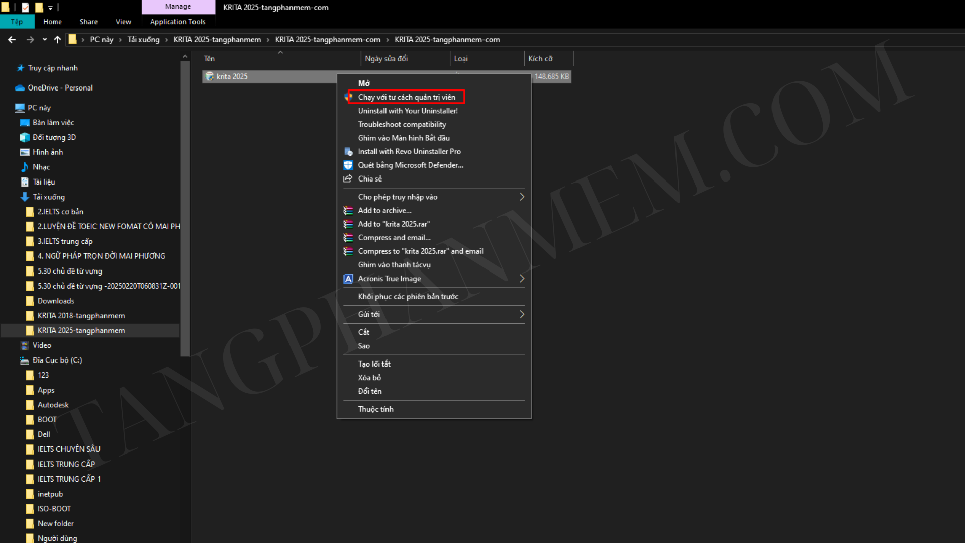 Bước 3: Nhấn chuột phải vào File phần mềm sau đó chọn như bên dưới để tiến hành cài đặt.