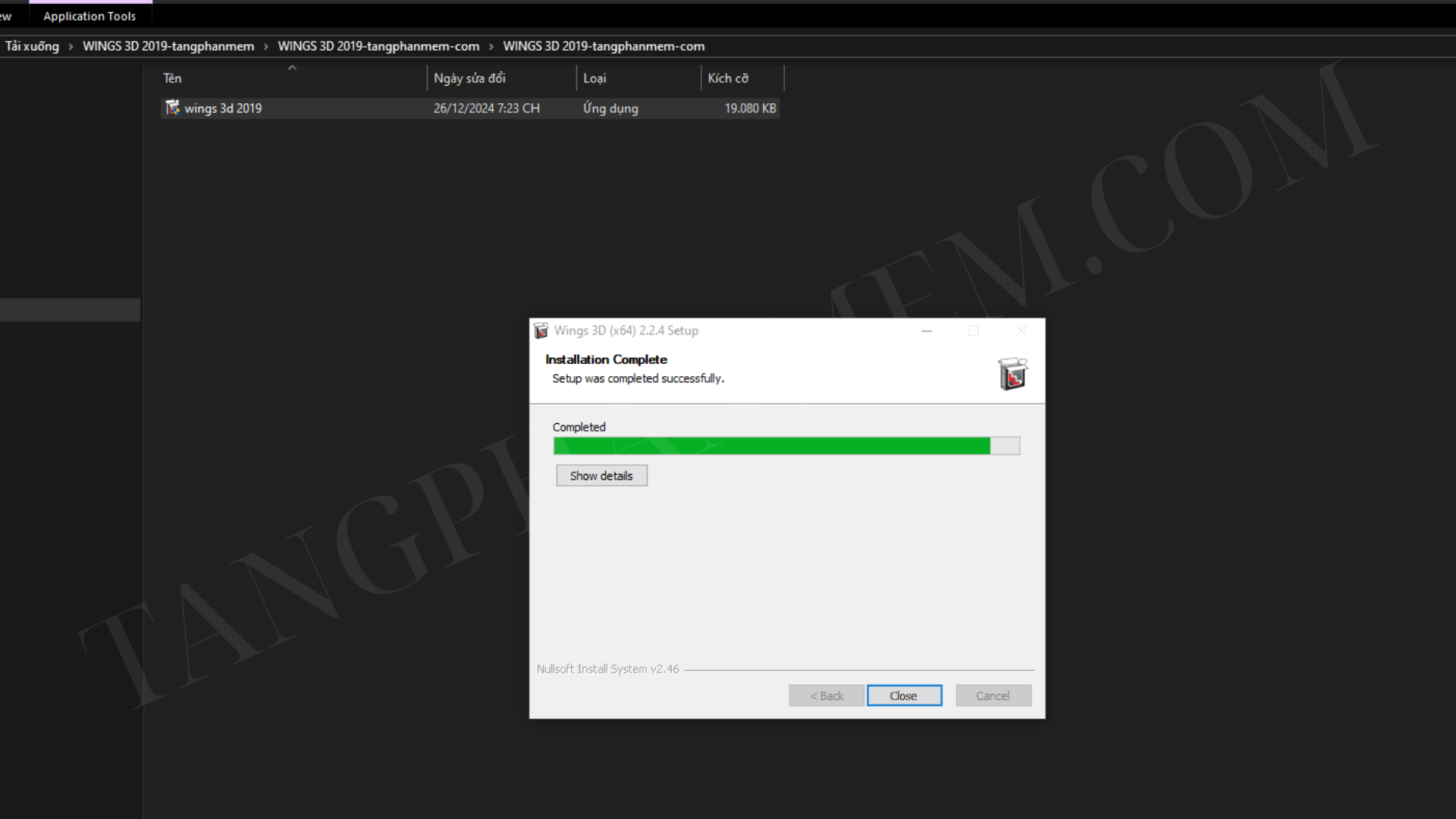 => Quá trình đang diễn ra, các bạn chờ ít phút rồi nhấn Close.