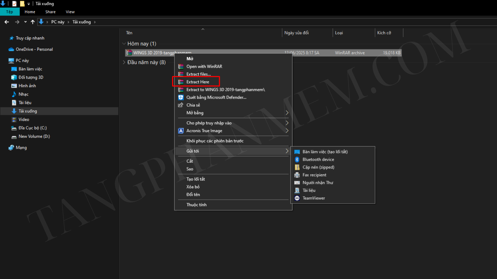 Bước 1: Tải File phần mềm từ các nguồn uy tín sau đó tiến hành giải nén bằng cách nhấn chuột phải chọn Extract Here.