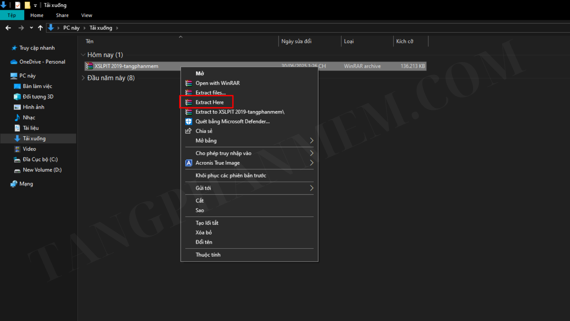 Bước 1: Tải File phần mềm từ các nguồn uy tín sau đó tiến hành giải nén bằng cách nhấn chuột phải chọn Extract here.